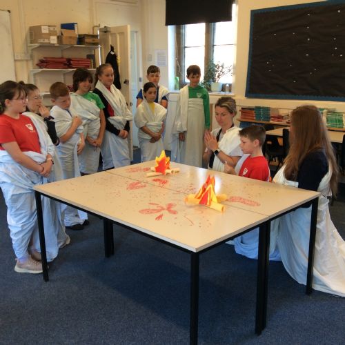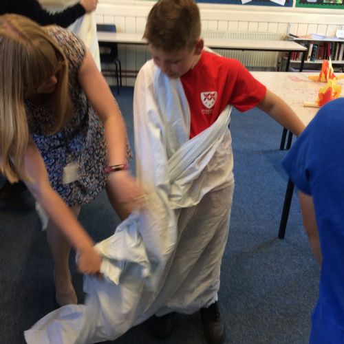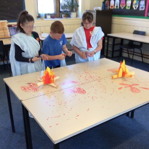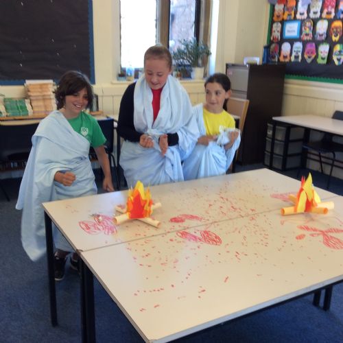 In the morning, we learnt about the classics (how people in ancient civilisations lived) and learnt to write our names in Greek, Hebrew, Syriac and Egyptian Hieroglyphics. We also discovered all the gruesome details about sacrifices in Ancient Greece through demonstrations on Percy Pig sweets - a delightful and delicious learning opportunity!